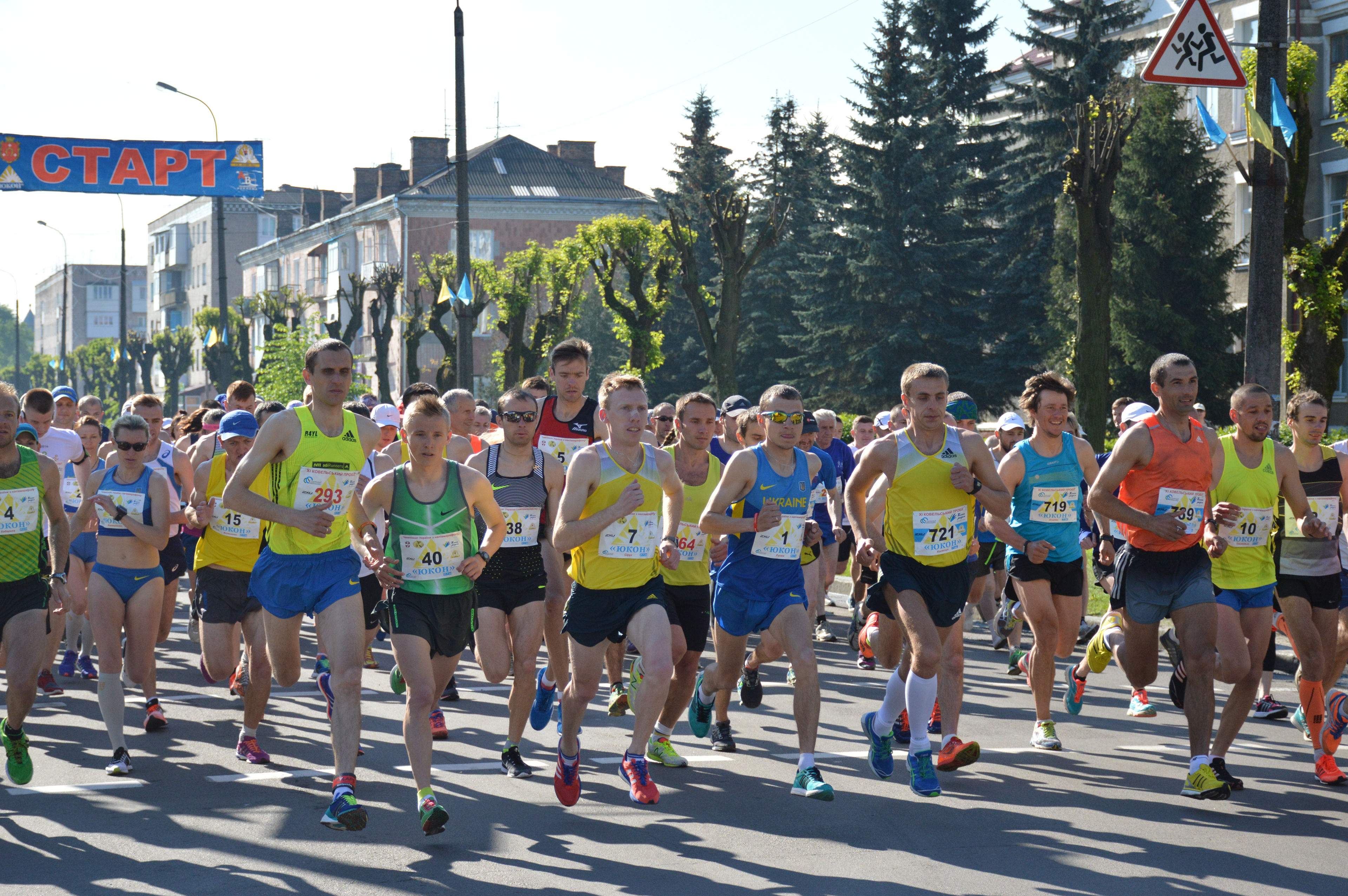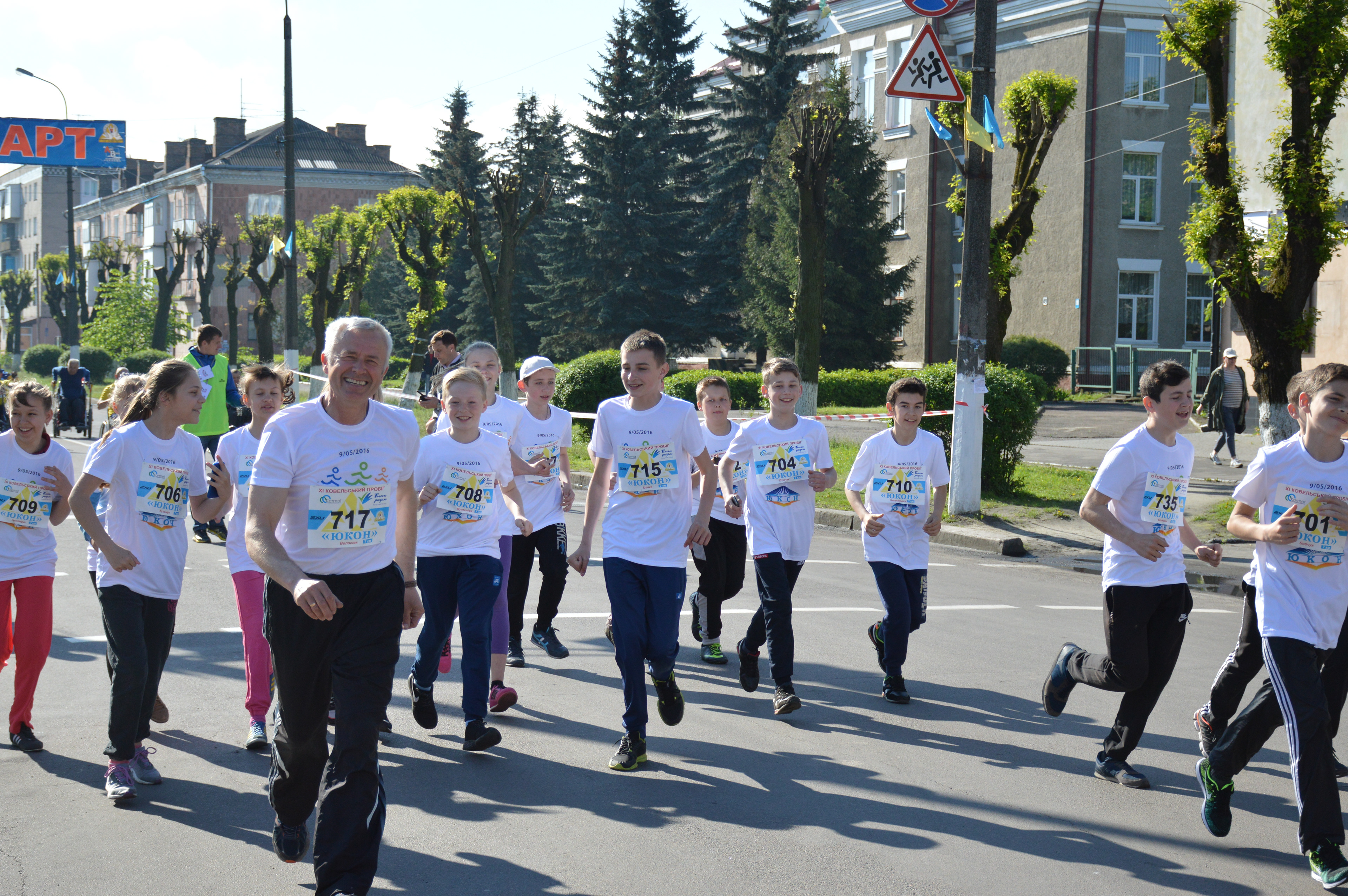 Different people, different ages, different genders, professionals and amateurs, people with disabilities are together in a run in the city Kovel.This idea symbolizes different colors of the logo and different sizes of running man in the graphic logo sign.